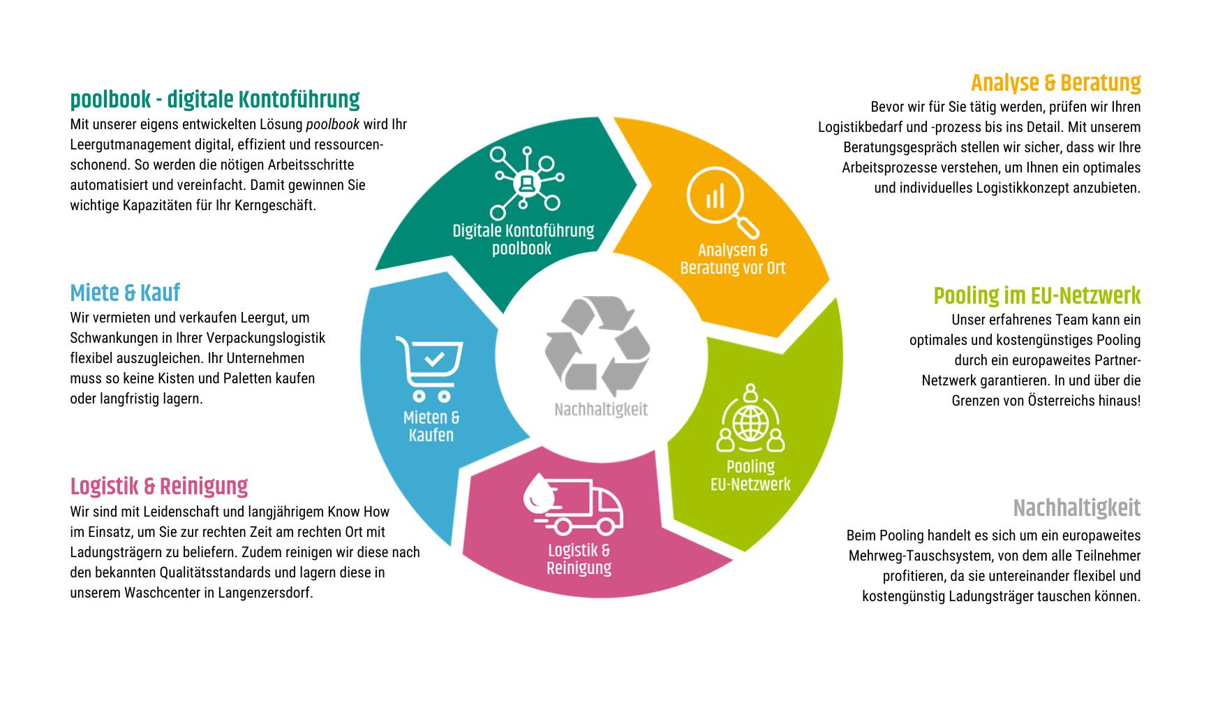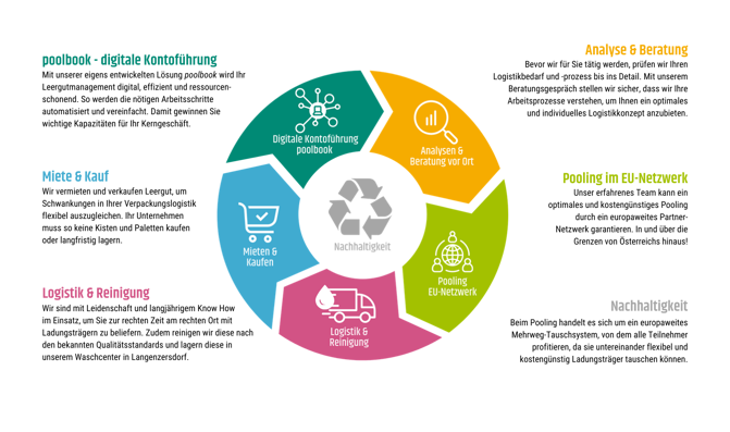 Beim Pooling handelt es sich um ein europaweites Mehrweg-Tauschsystem, von dem alle Teilnehmer profitieren, da sie untereinander flexibel und kostengünstig Ladungsträger tauschen können. Die Vorteile sind: